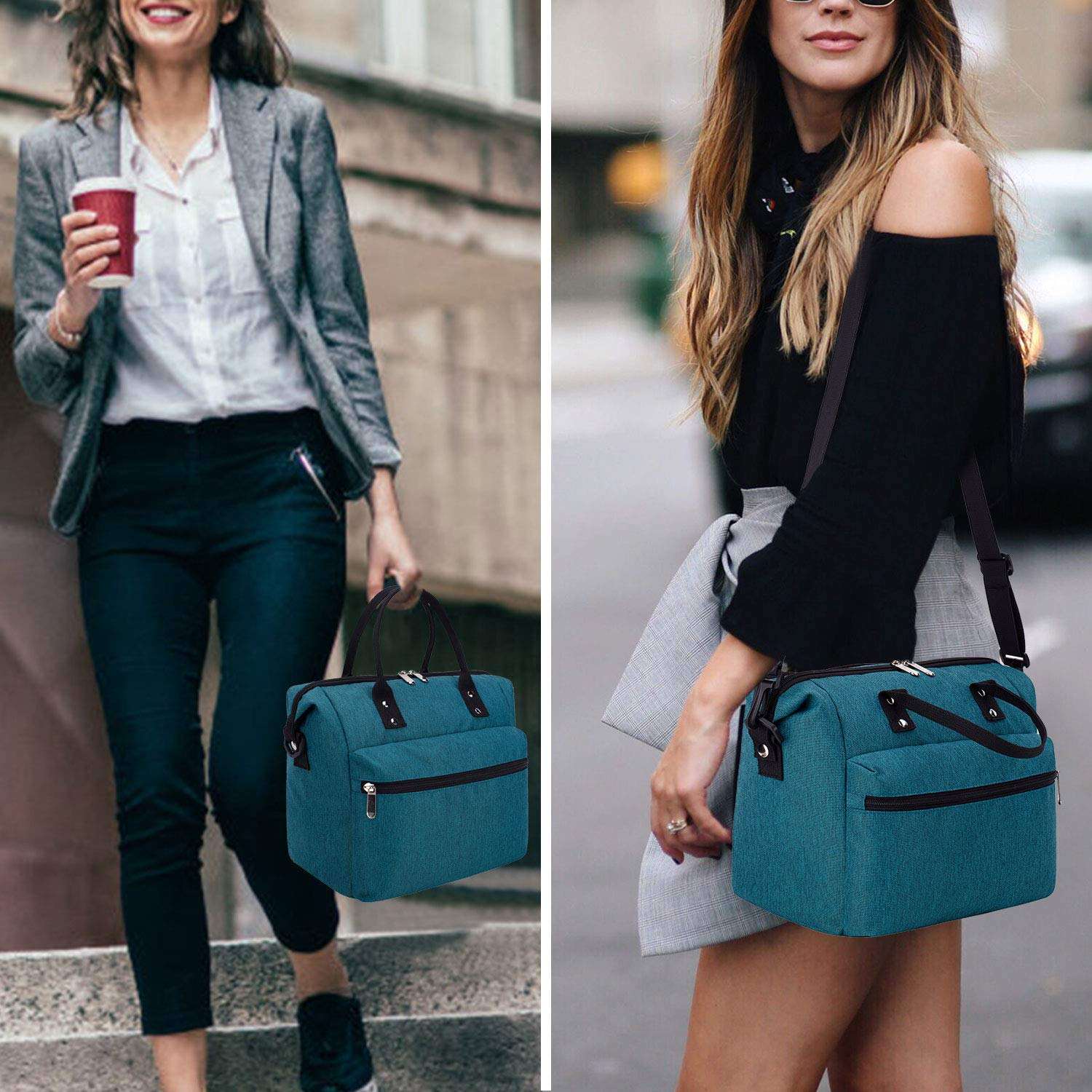 حقيبة يد غداء معزولة مانعة للتسرب مع حزام كتف قابل للتعديل والإزالة ، حاوية صندوق غداء متينة قابلة لإعادة الاستخدام للنساء / أنا
