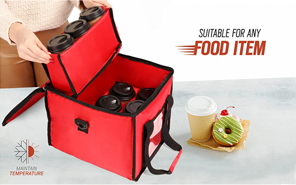 سعة كبيرة حقيبة قهوة معزولة توصيل الطعام شراب مبرد بقالة صندوق دراجة نارية حمل حامل طعام | ||