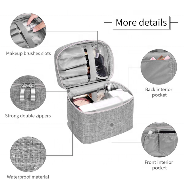 سعة كبيرة نسيج مقاوم للماء طباعة شعار مخصص الجمال وظيفية يشكلون حقيبة مستحضرات التجميل مربع حقيبة