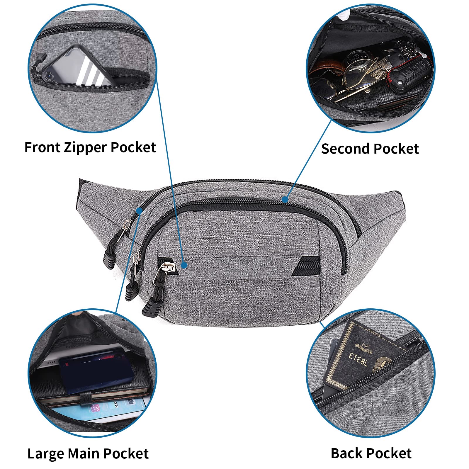 Munctifunctional الرجال قماش الرياضة في الهواء الطلق السفر مخصص مربع حزمة مراوح الخصر حقيبة مع جيوب كبيرة