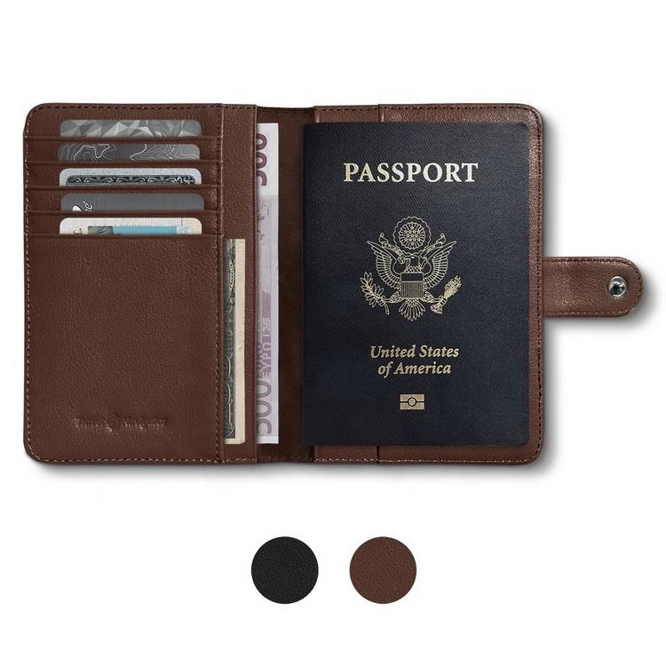 RFID حجب الجلد حامل جواز السفر مع محفظة نحيفة ، ثنائية الطي للرجال والنساء