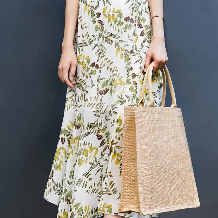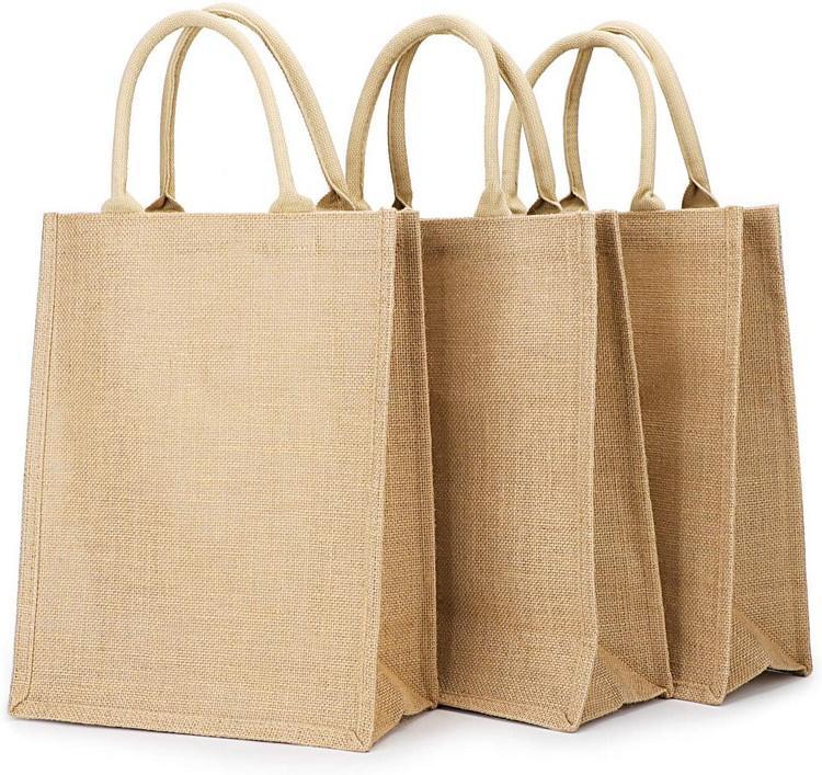 صديقة للبيئة الجوت حمل حقيبة الخيش حمل الحقائب مع مقابض قابلة لإعادة الاستخدام حقيبة البقالة للنساء تسوق حمل أكياس الجوت عادي