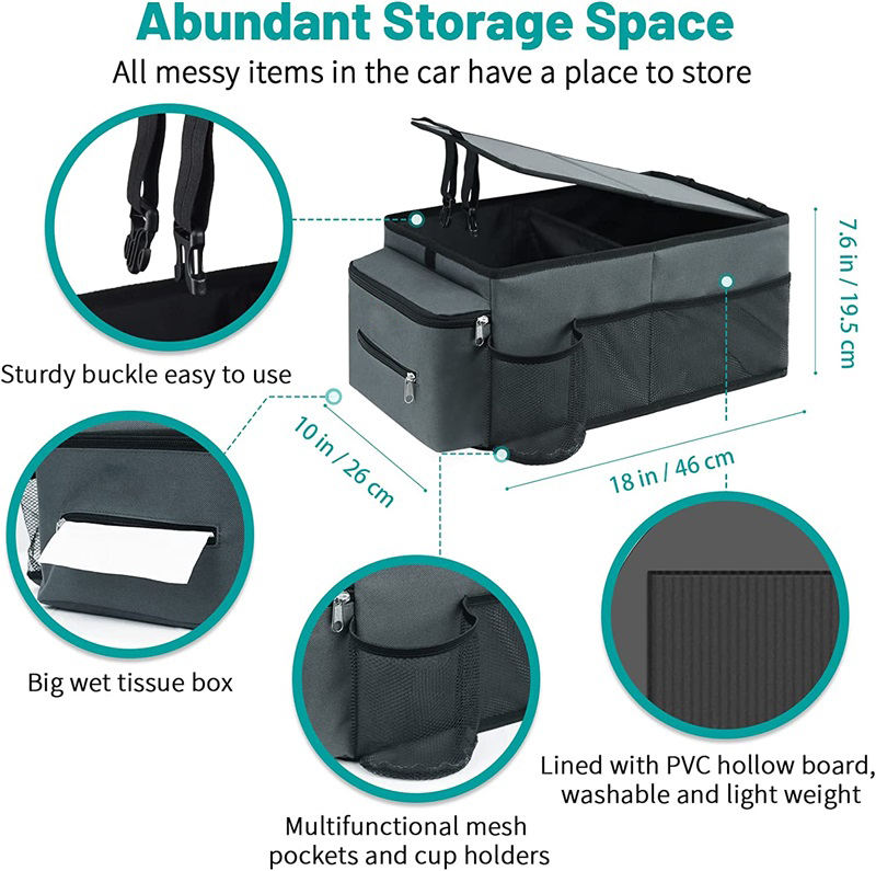 اسم المنتج | صندوق تخزين الأمتعة القابل للطي المتين ومنظم الصندوق القابل للطي والتخزين للسيارة مع حامل الكأس وغطاء مقاوم للاهتراء | ||||||