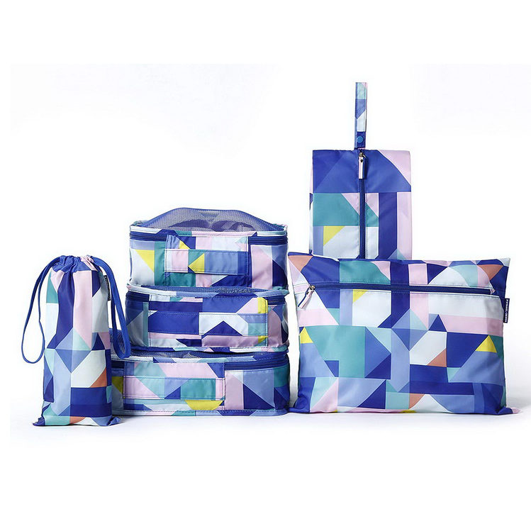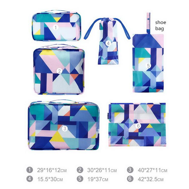 بيت / منتجات / حقيبة سفر / مكعبات السفر / طباعة كاملة 6 قطع مكعبات تعبئة الأمتعة المحمولة للسفر منظم مكعبات التعبئة المقاومة للماء للرجال والنساء