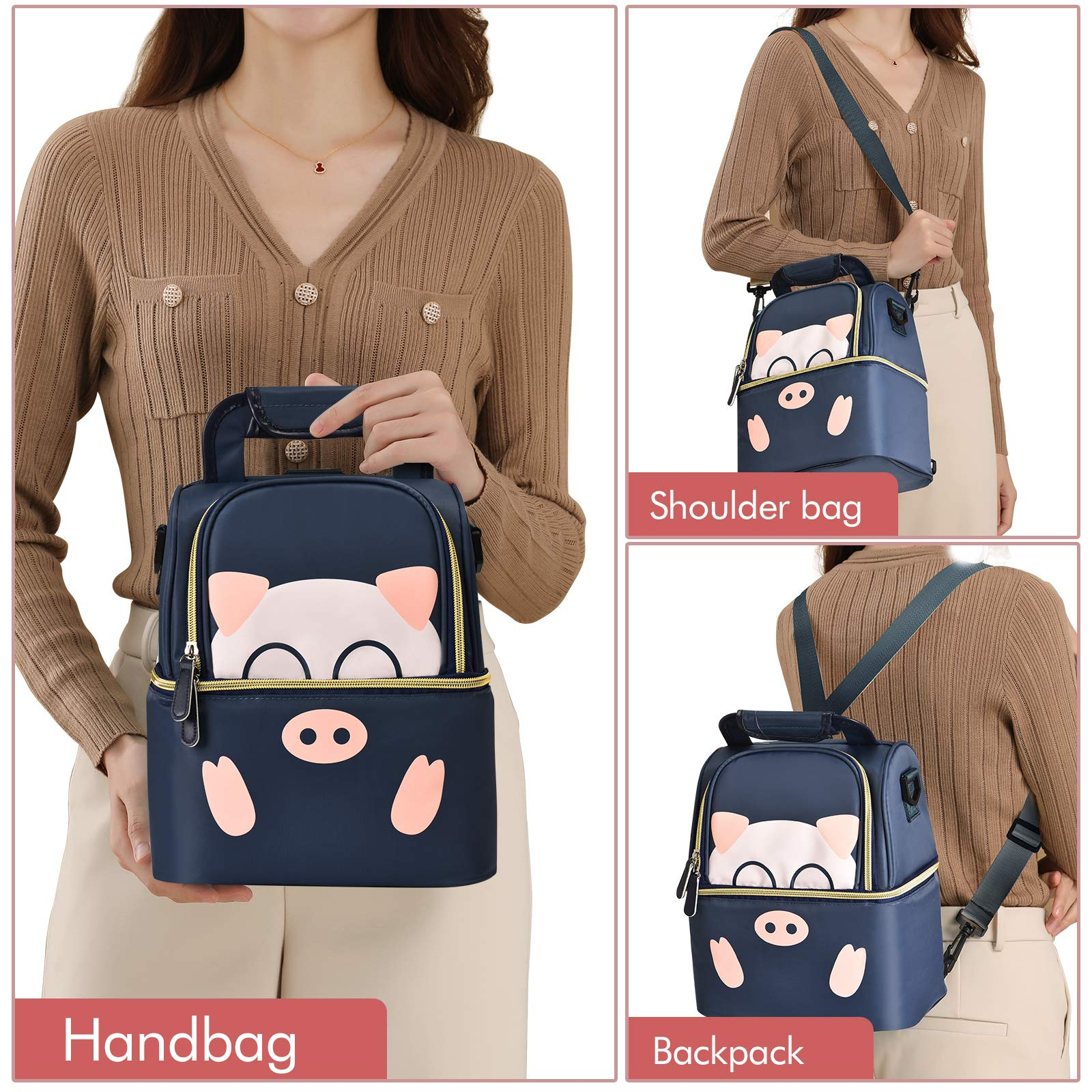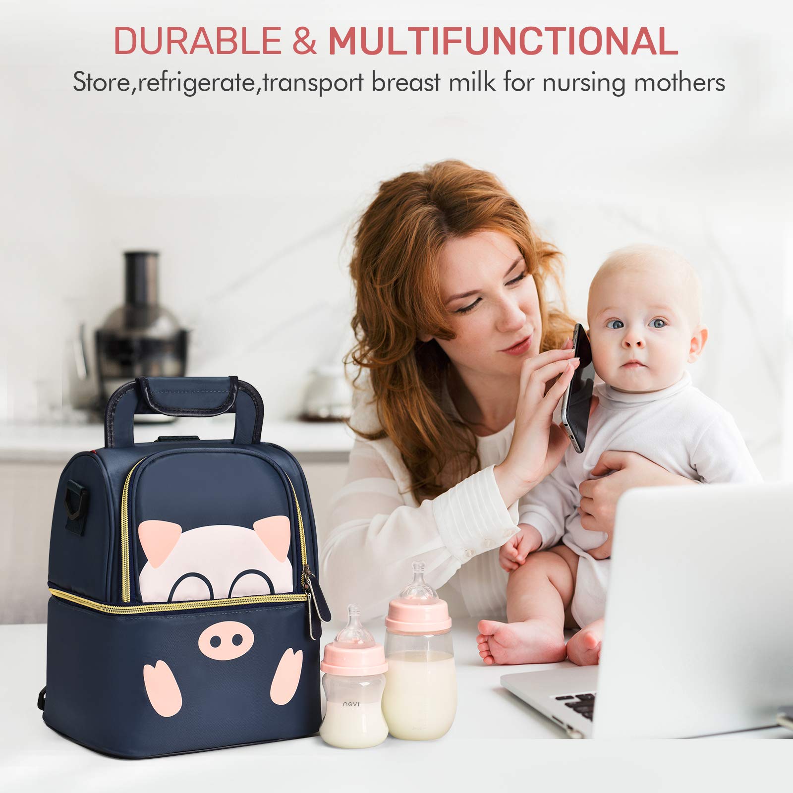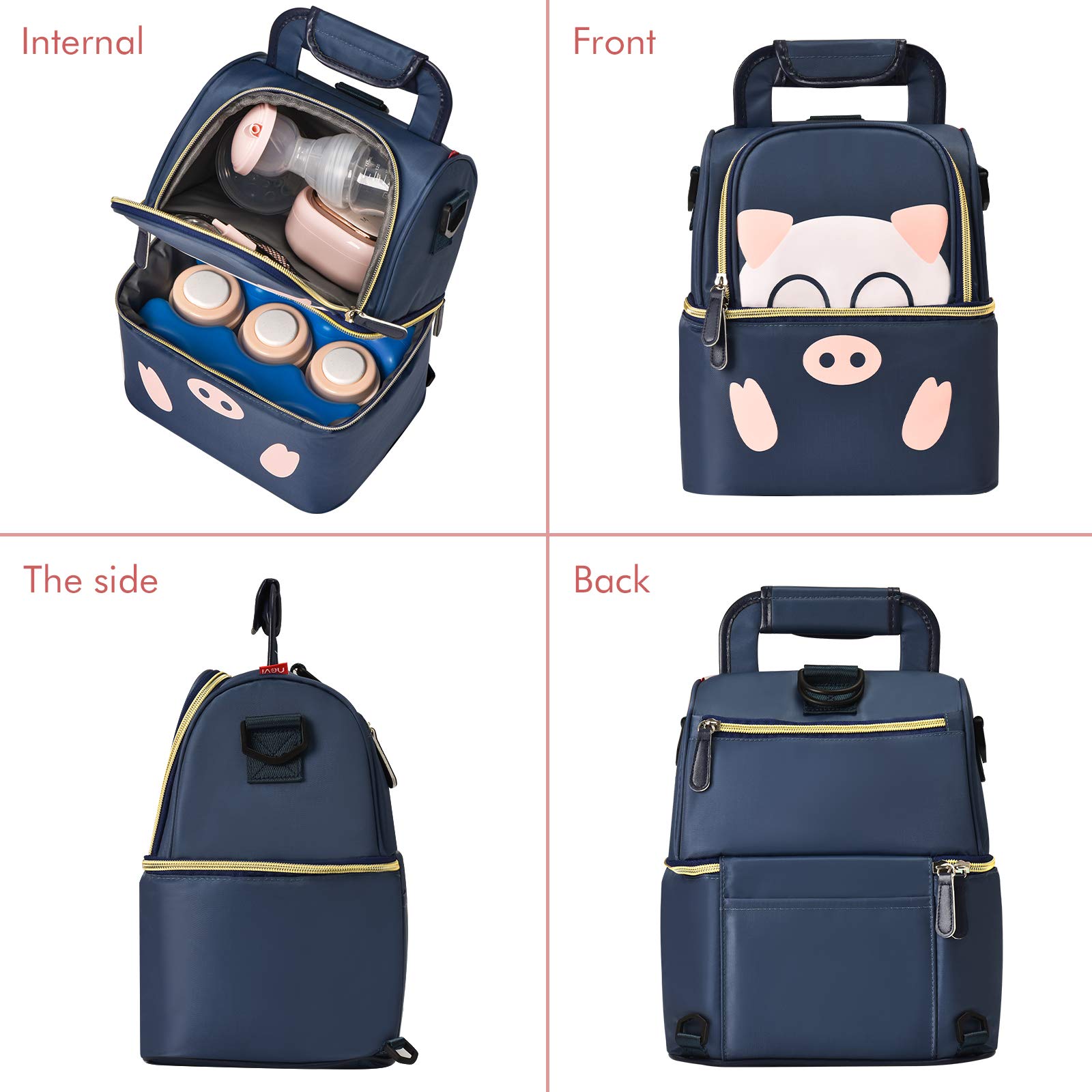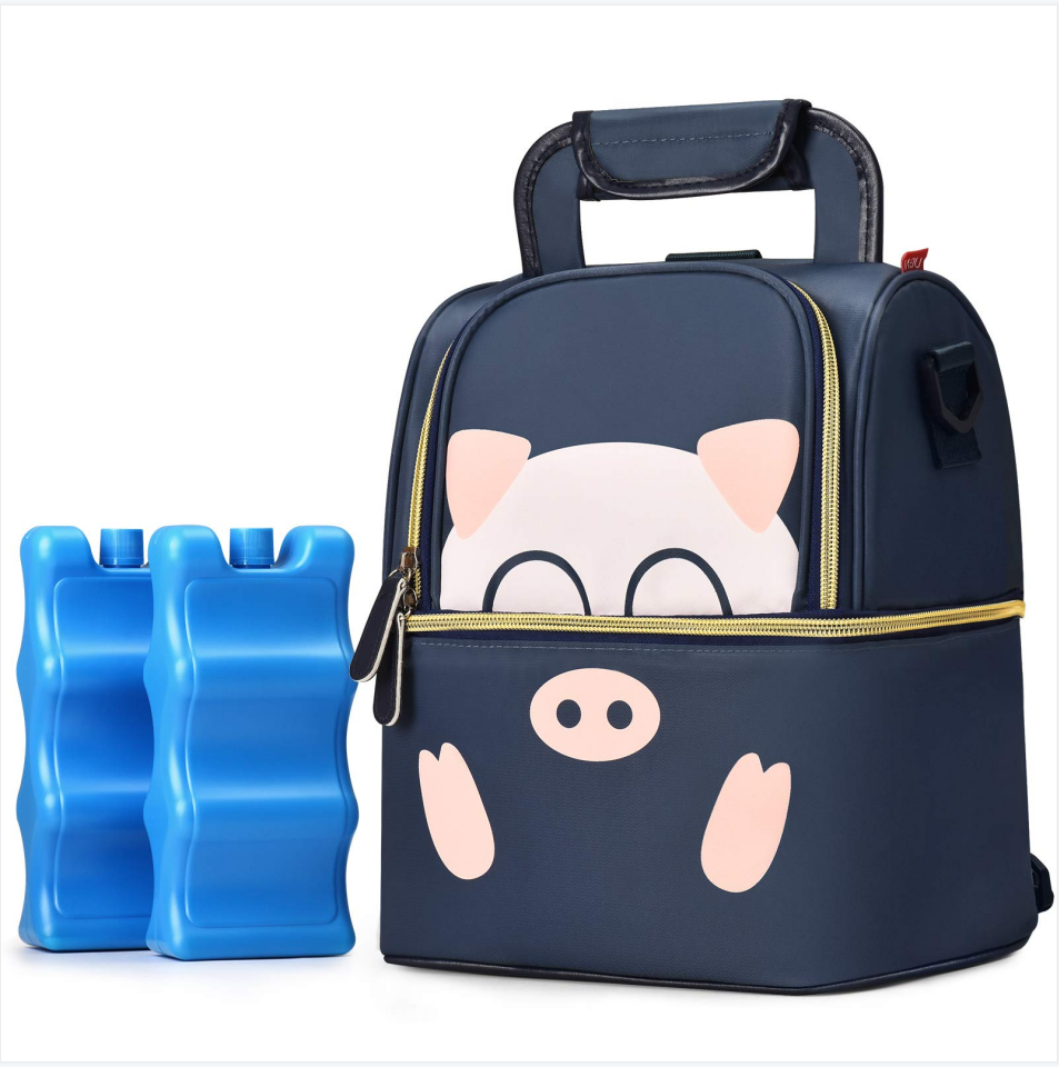 بيت / منتجات / حقيبة تبريد وحقيبة غداء / حقيبة تبريد / طبقة مزدوجة لطيف الكرتون 6 زجاجات حليب الثدي برودة حقيبة معزولة حراريًا حقيبة مضخة الثدي على ظهره