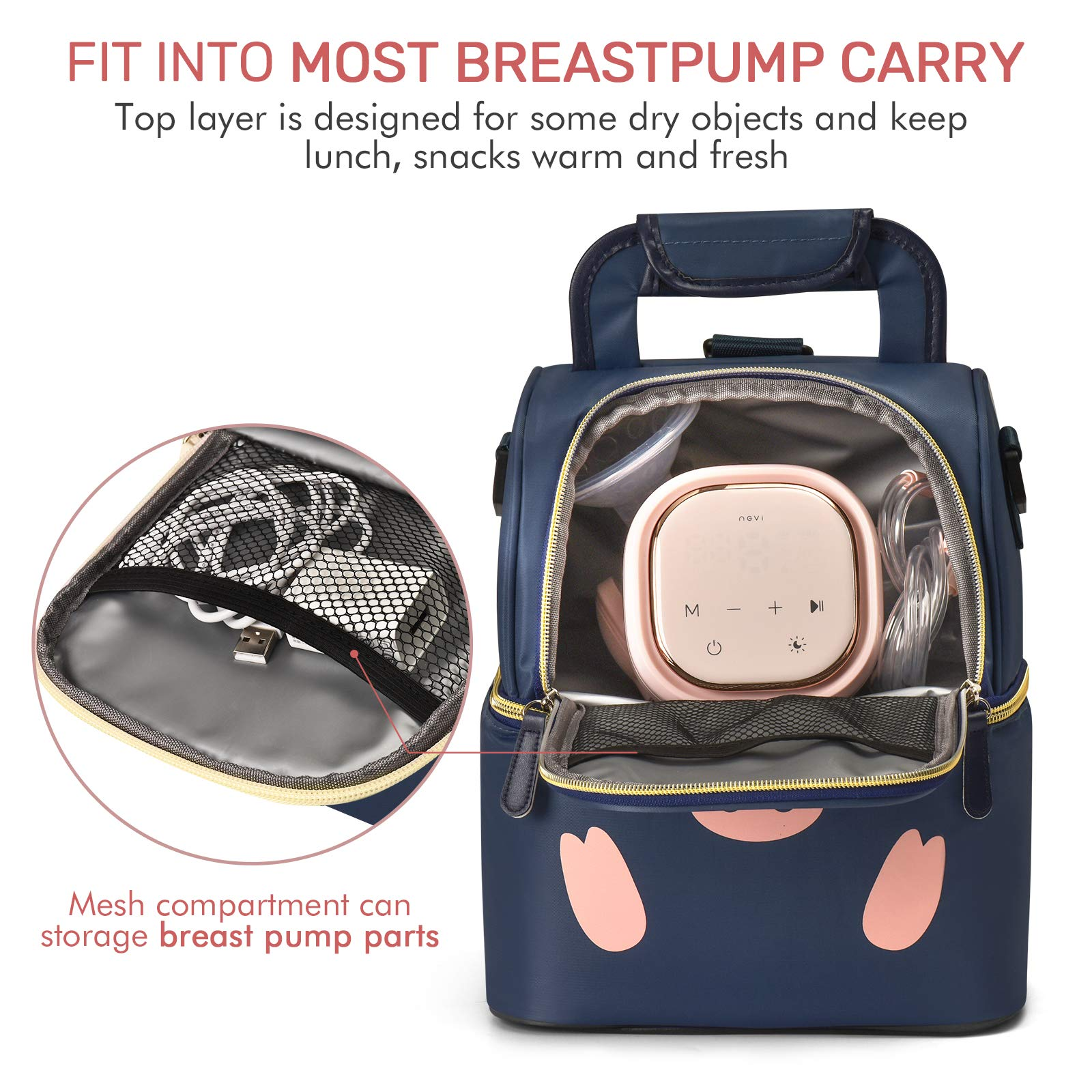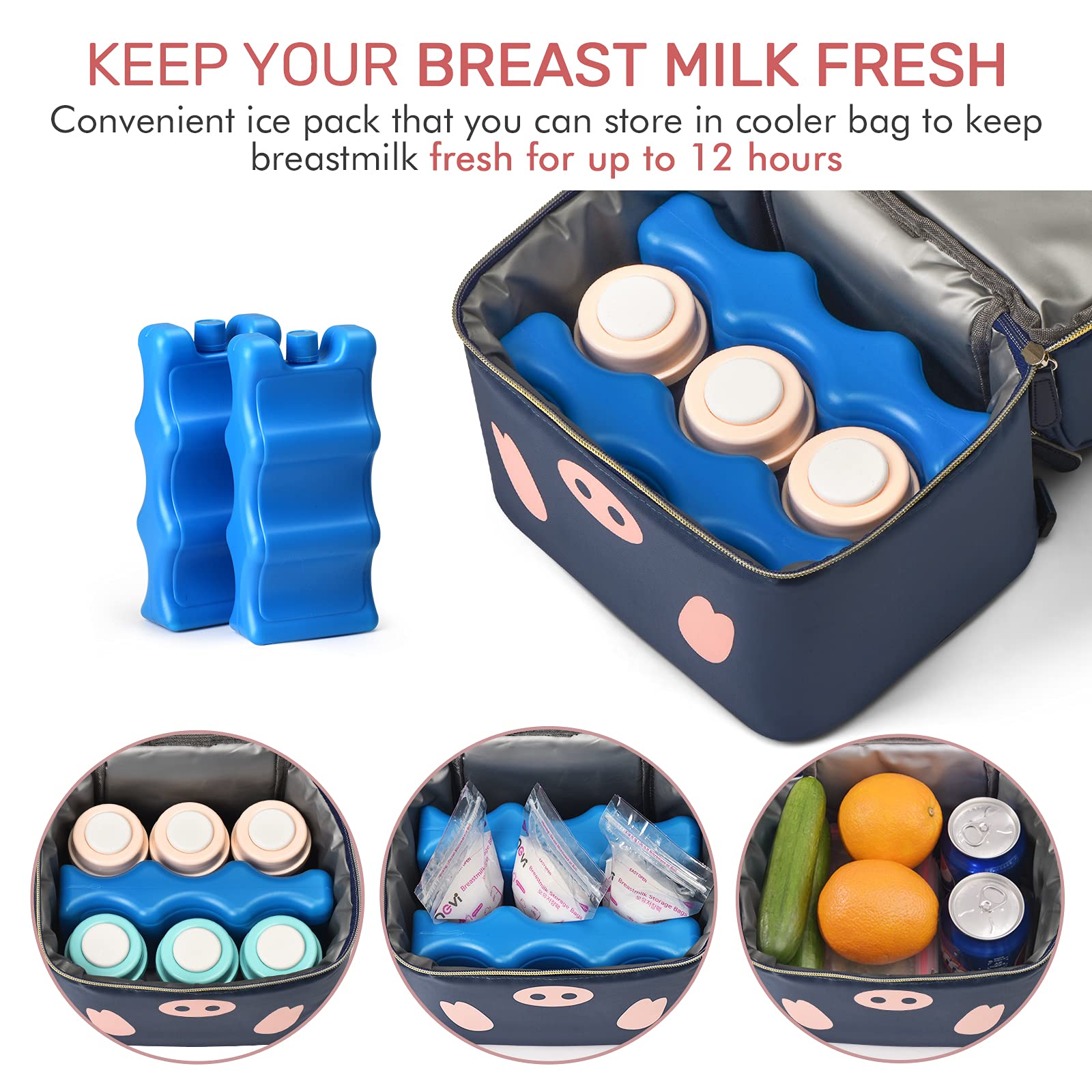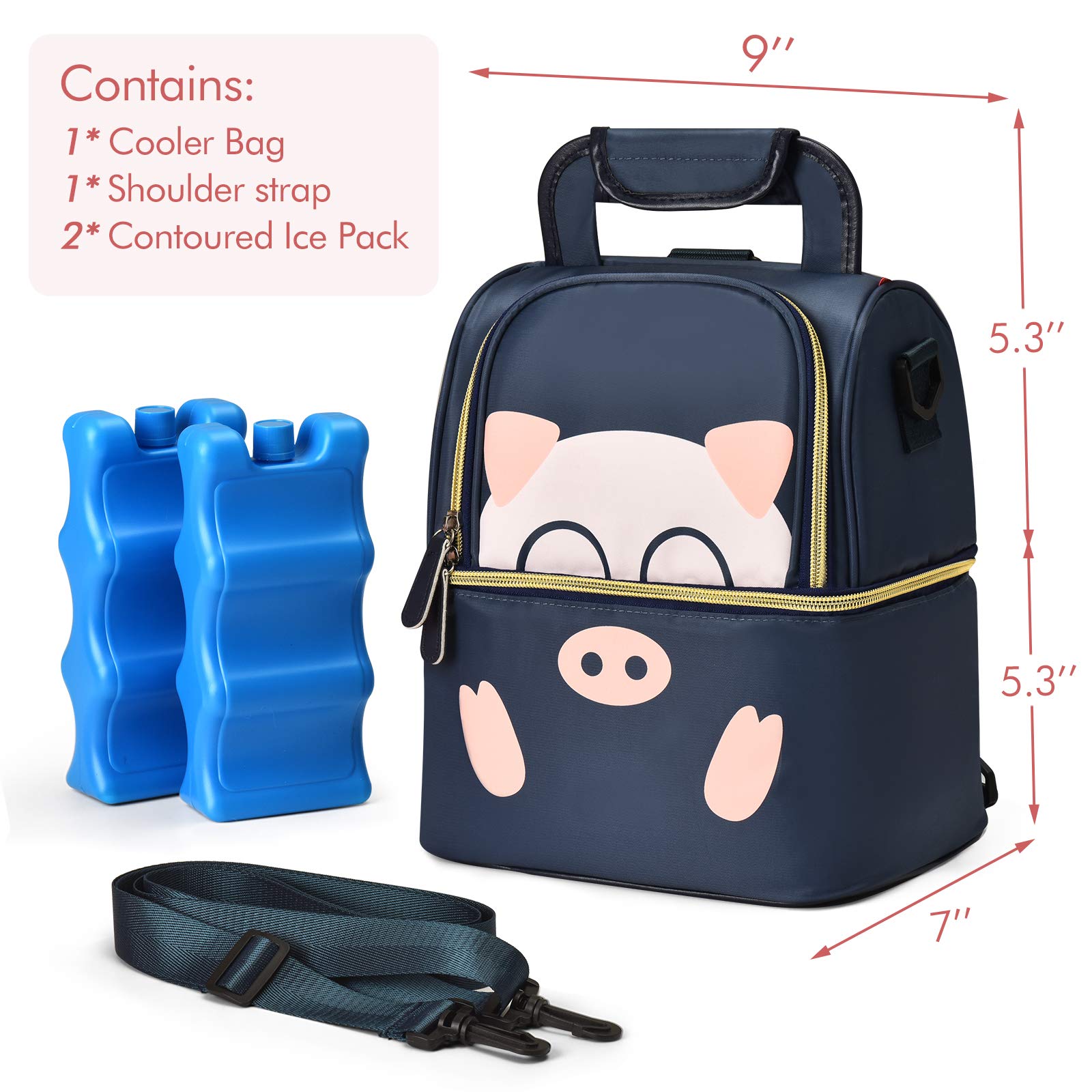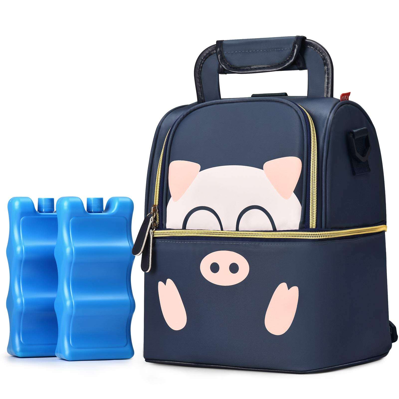 بيت / منتجات / حقيبة تبريد وحقيبة غداء / حقيبة تبريد / طبقة مزدوجة لطيف الكرتون 6 زجاجات حليب الثدي برودة حقيبة معزولة حراريًا حقيبة مضخة الثدي على ظهره