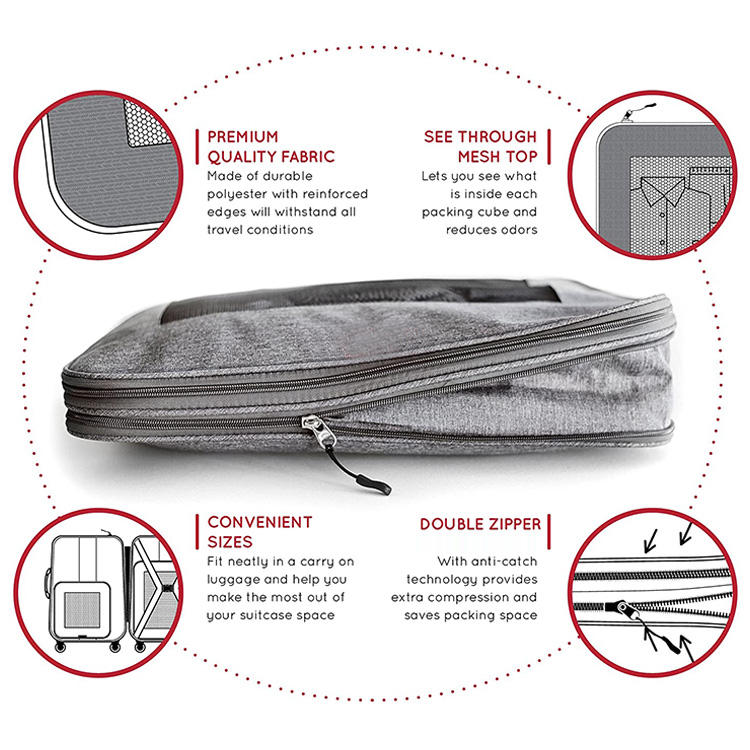 عالية الجودة مزدوجة سستة ضغط التعبئة مكعبات قابلة للتوسيع الأعمال سفر منظم الأمتعة | ||
