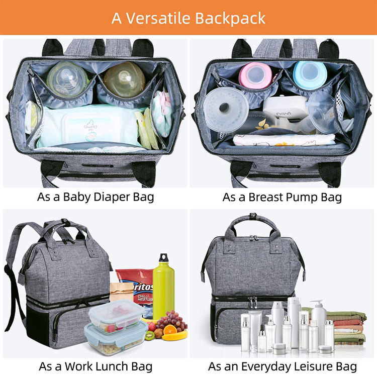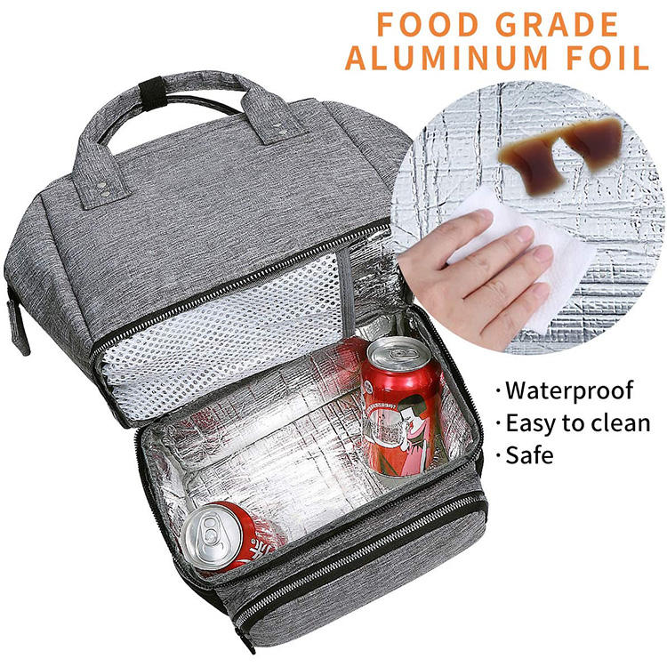 متعددة الاستخدامات ذات الطابقين حزمة يوم الغذاء الغداء مربع حقيبة ظهر الأم حفاضات حقيبة حليب الثدي زجاجة تبريد | ||