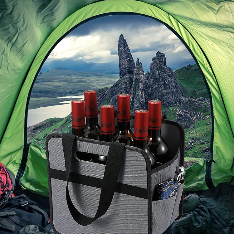 قابلة للطي للماء 6 زجاجات النبيذ حمل حمل حقيبة السفر التخييم المحمولة البيرة يمكن حقيبة منظم سيارة صغيرة | ||