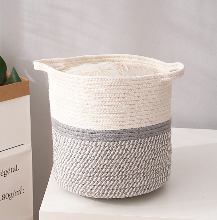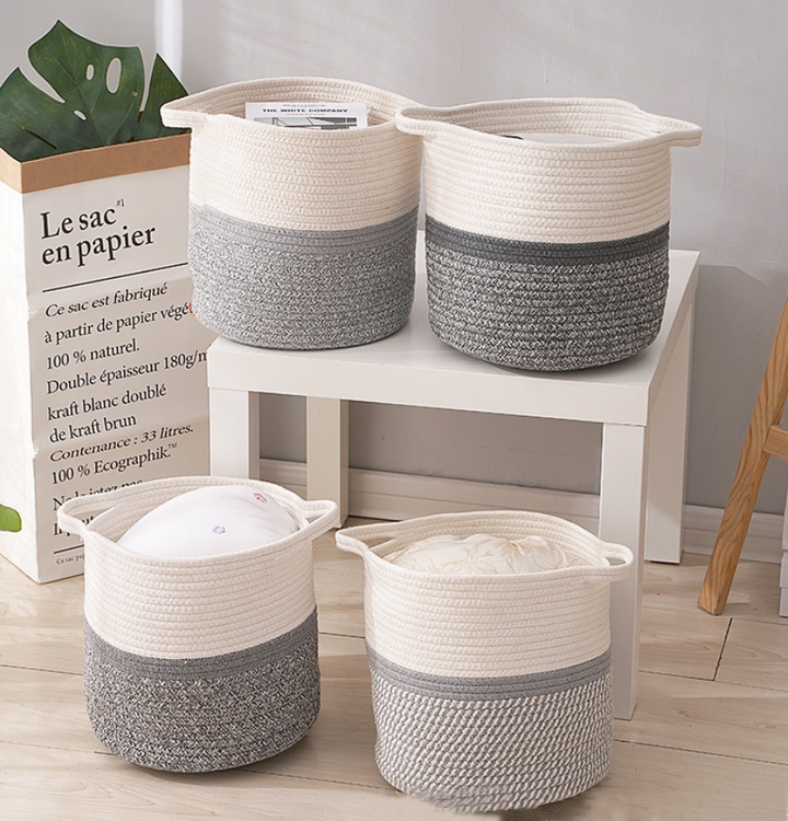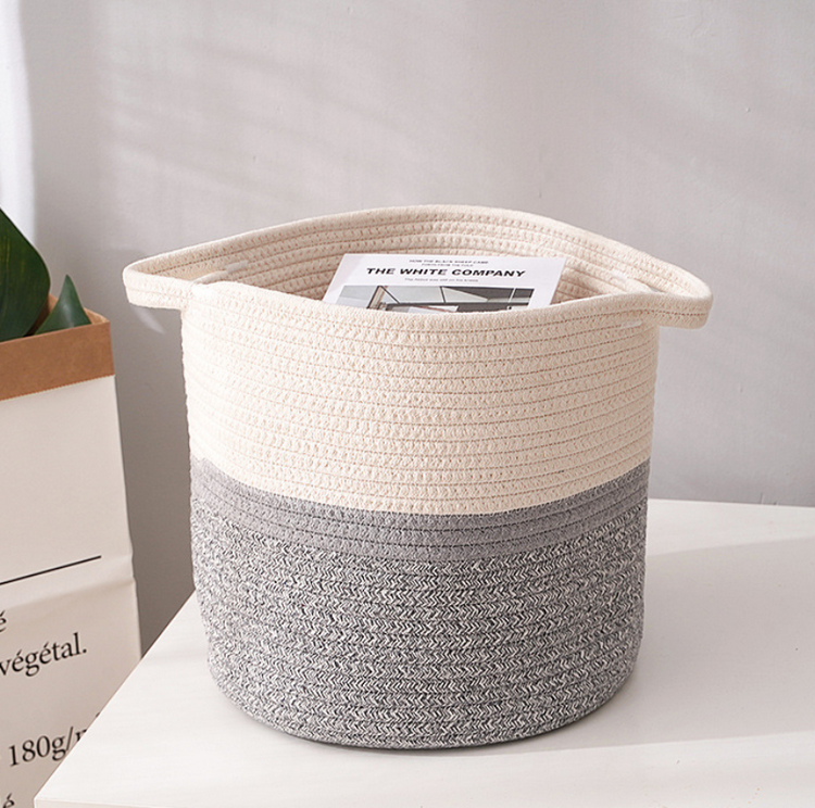 | اسم | لعبة ملابس محمولة بطانية غسيل سلة تخزين قطنية صديقة للبيئة سلة تخزين بحبل قطني |