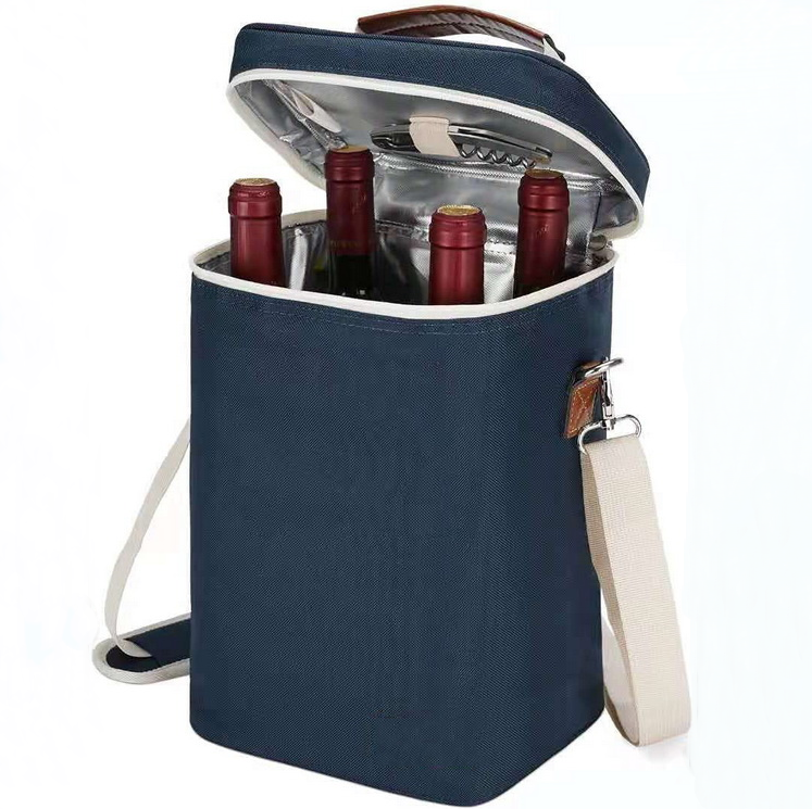 بيت / منتجات / حقيبة تبريد وحقيبة غداء / كيس النبيذ / مانعة للتسرب 4 زجاجة نبيذ برودة حقيبة مخصصة الشمبانيا المحمولة النبيذ تحمل حقيبة برودة معزول مع فتاحة المفتاح
