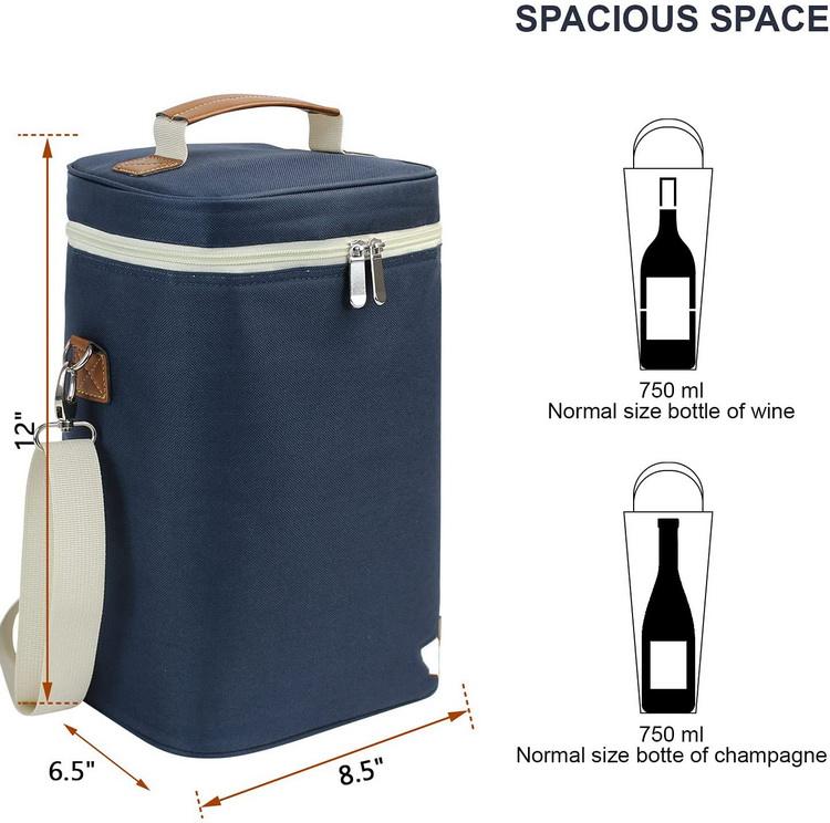 زجاجتان تسمية خاصة محمولة مانعة للتسرب للنزهة للسفر زجاجات نبيذ معزولة مبرد نبيذ منطقة مزدوجة