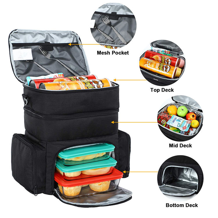 | متعددة المقصورات وظيفية حامل الطعام حقيبة تبريد كبيرة حقيبة طعام النزهة المعزولة | ||