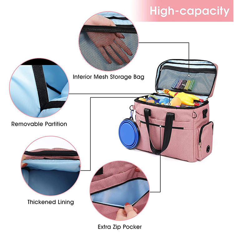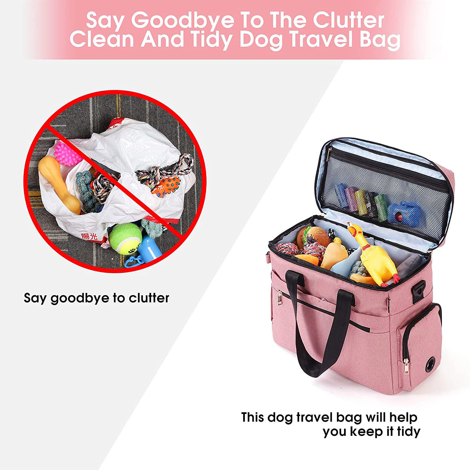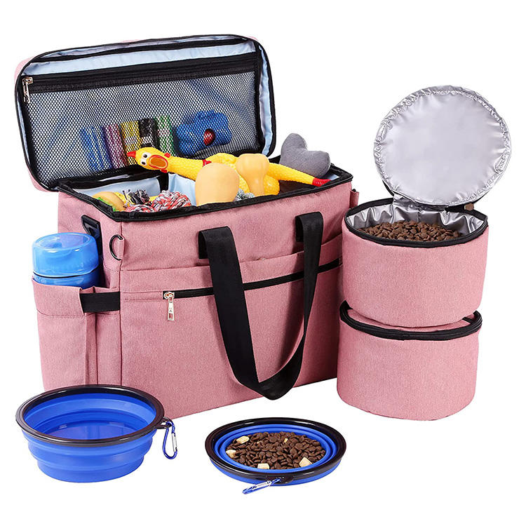 | مجموعة حقيبة تخزين منتجات الحيوانات الأليفة ذات السعة الكبيرة ، وعاء طعام للكلاب لرحلة قصيرة حقيبة سفر محمولة للكلاب | |