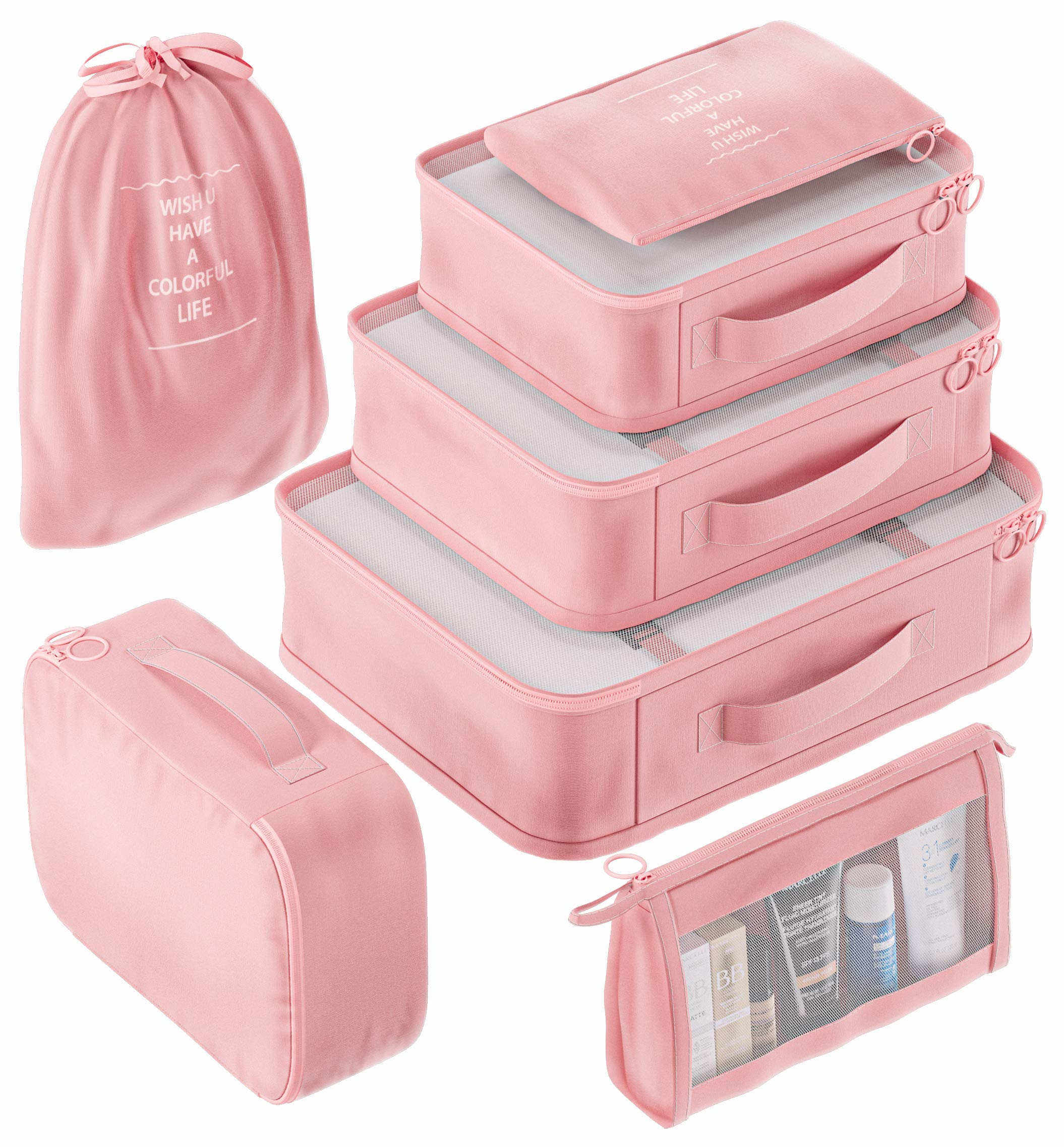 بيت / منتجات / حقيبة سفر / مكعبات السفر / مجموعة مكعبات تعبئة للسفر للنساء لحقائب السفر منظم حقائب السفر حقيبة سفر نسائية مطبوعة