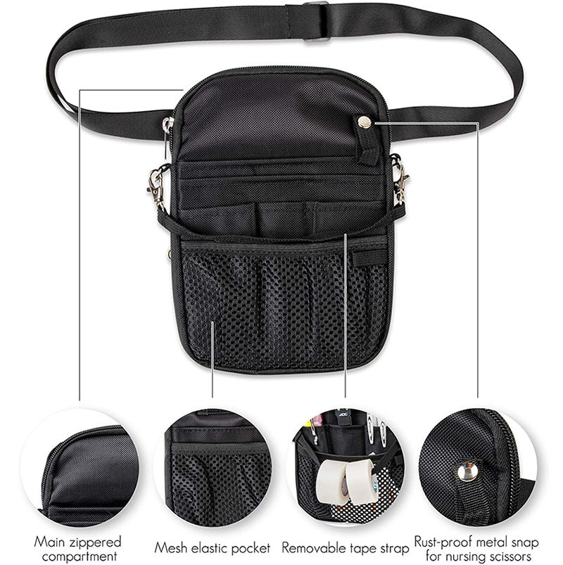 بيت / منتجات / فاني باك / مخصص جيوب متعددة للجنسين حزام الخصر الطبي المنظم ممرضة الخصر حقيبة حزمة مراوح