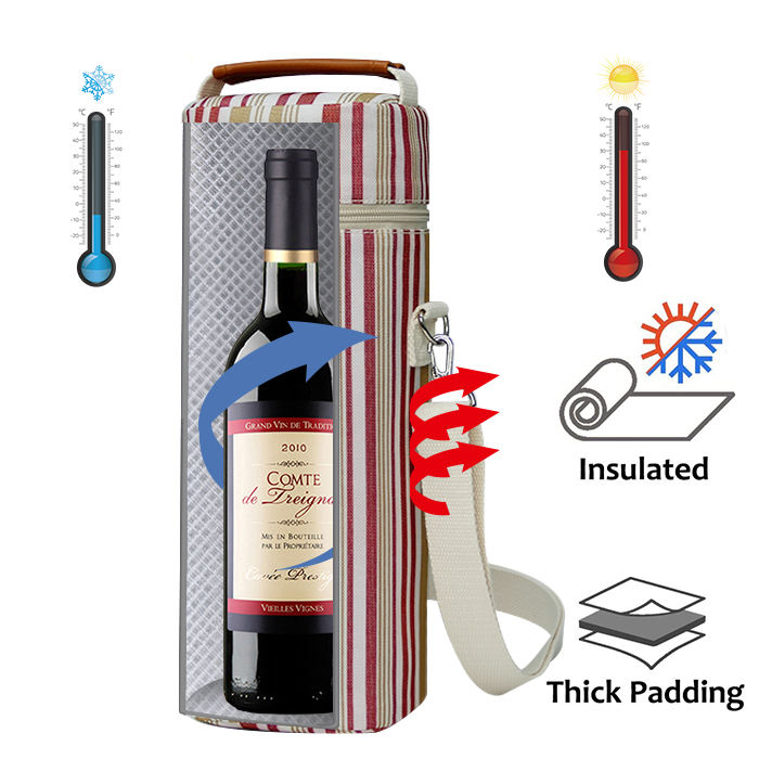 | حقيبة تبريد معزول حراريًا مخصصة حقيبة هدايا زجاجة نبيذ فاخرة | ||