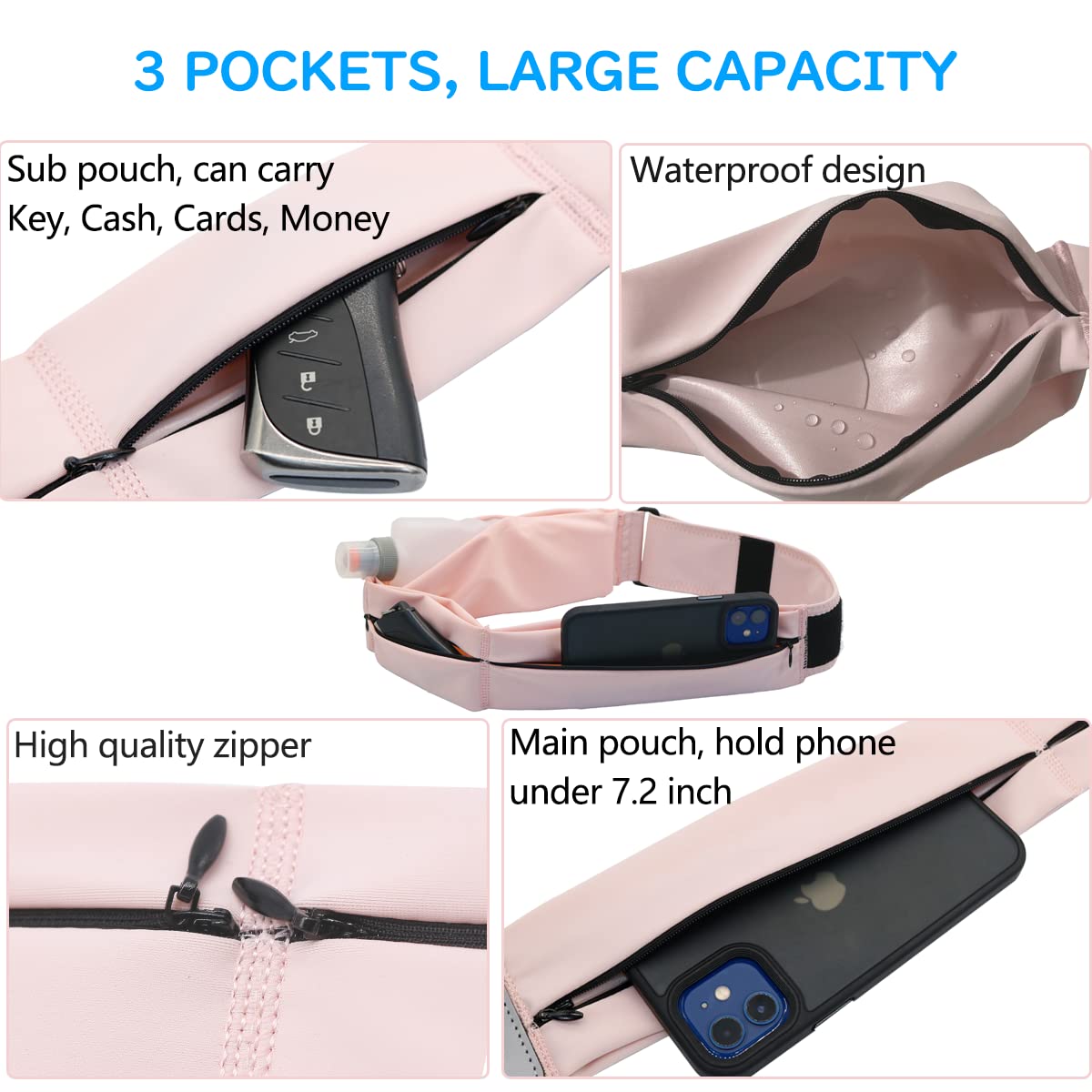 بيت / منتجات / فاني باك / مريحة كيس نايلون النسيج في الهواء الطلق تشغيل الخصر حقيبة للماء الهاتف المحمول زيبر الحزام