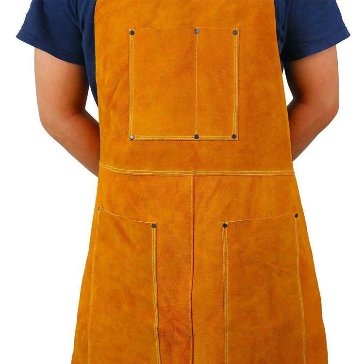 | بند | مريلة مخصصة من الجلد الأصفر مريلة لحام نجار للرجل |