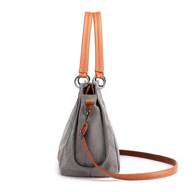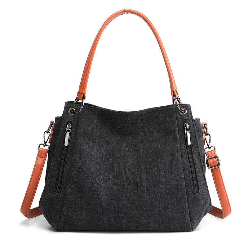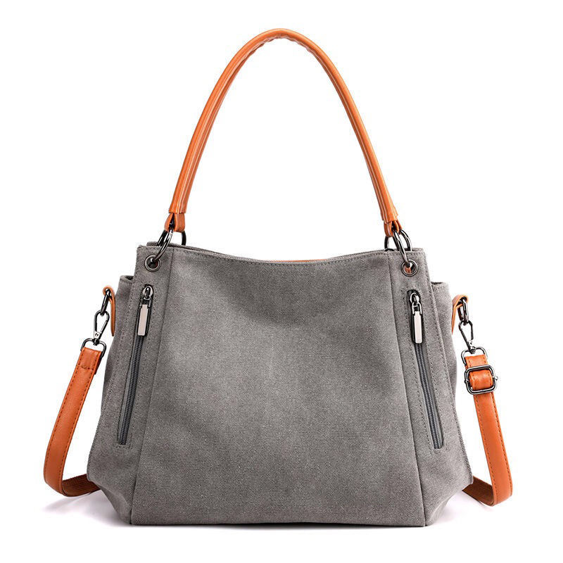 معاد تدويرها قماش حمل حقيبة مع جيب سستة أنيقة حقيبة يد المرأة عارضة حقيبة الكتف الثقيلة قماش