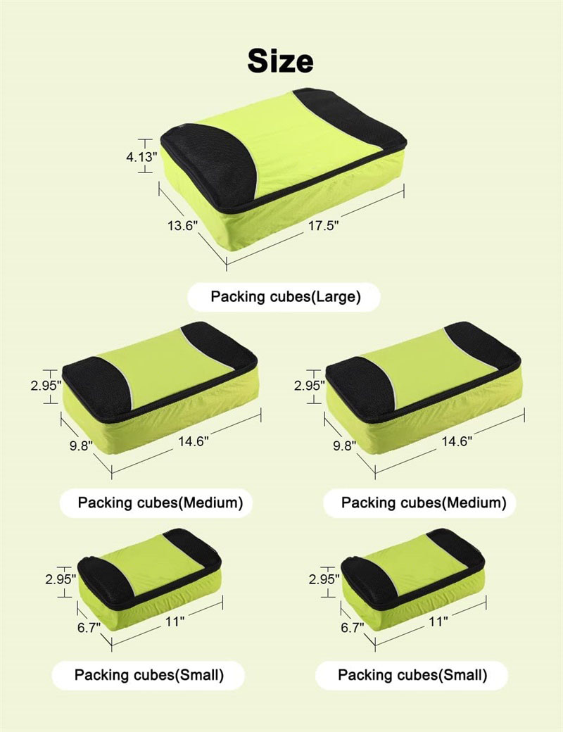| اسم المنتج | مكعبات التعبئة منظم السفر مكعبات التعبئة مجموعة مكعبات حقيبة سفر خفيفة الوزن للسفر | ||||||