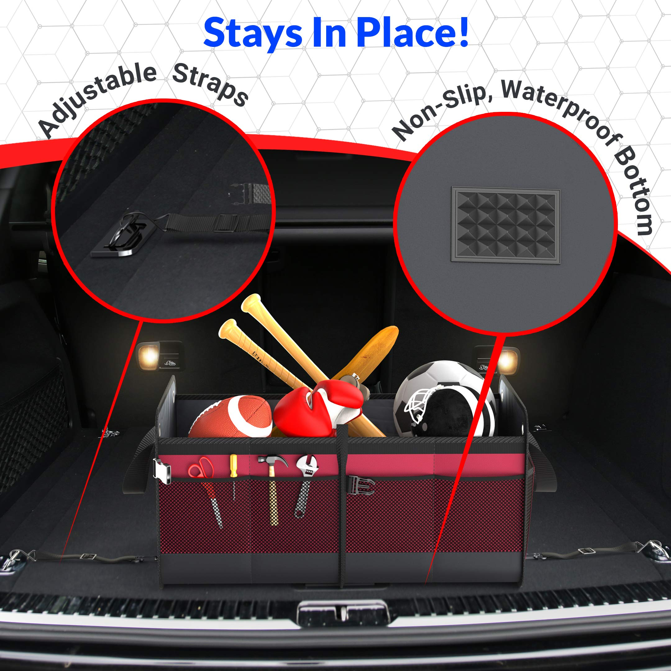 منظم تخزين صندوق السيارة SUV متعدد المقصورات المخصص قابل للطي مع أشرطة تأمين قابلة للتعديل