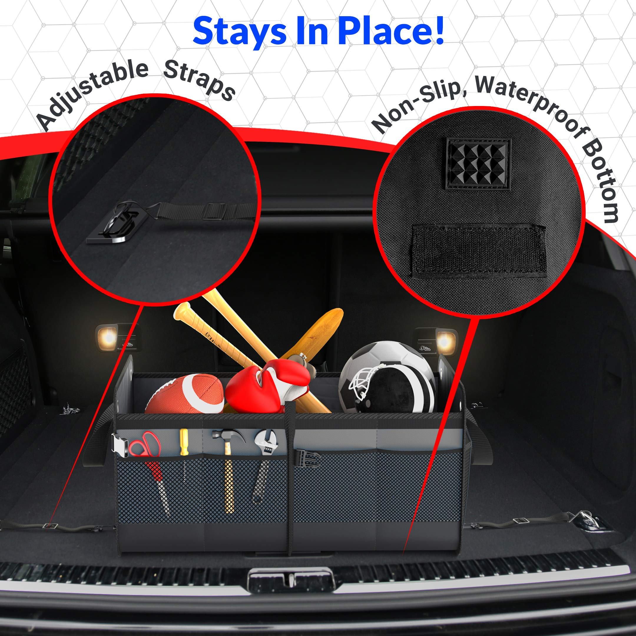 منظم تخزين صندوق السيارة SUV متعدد المقصورات بشعار مخصص قابل للطي مع أشرطة تأمين قابلة للتعديل