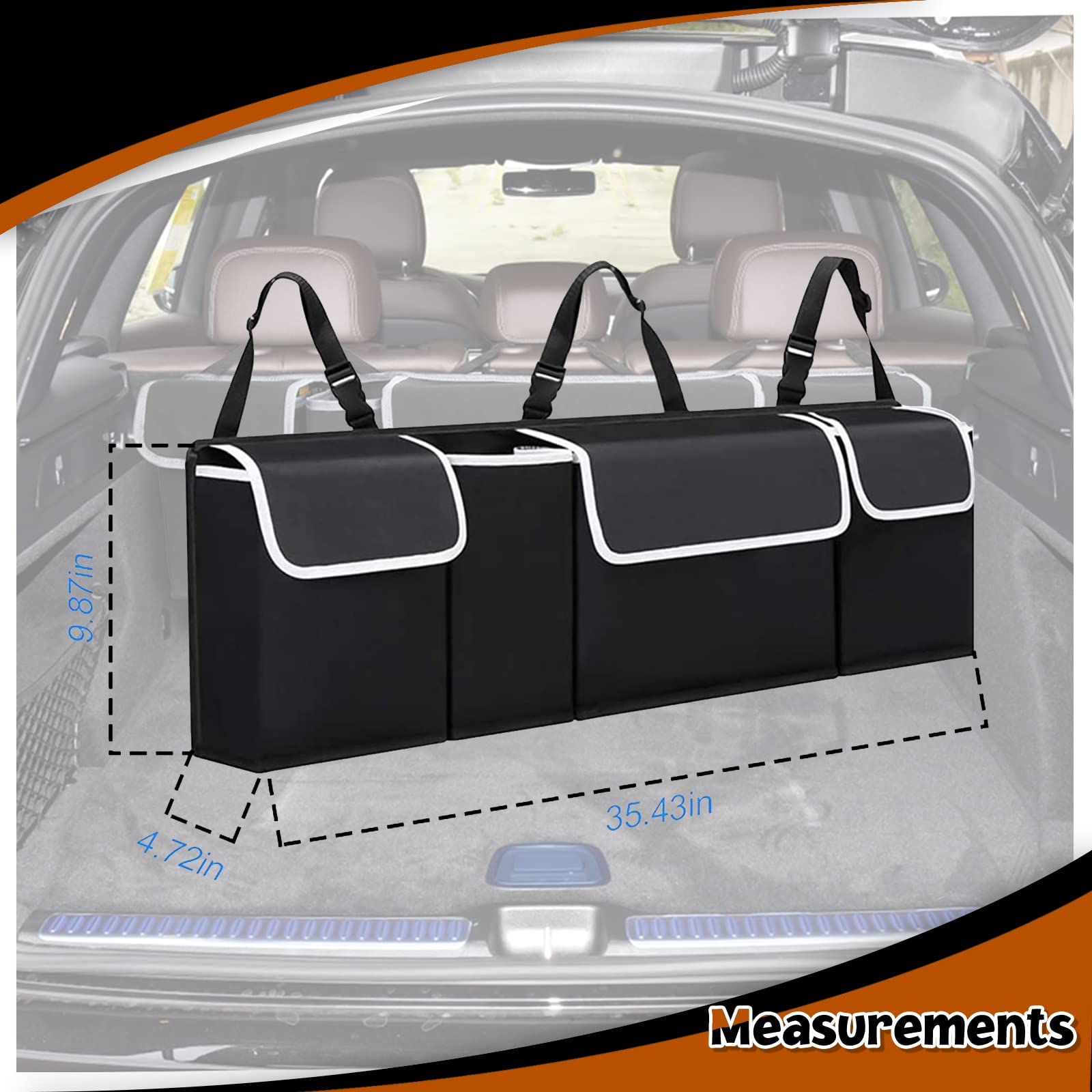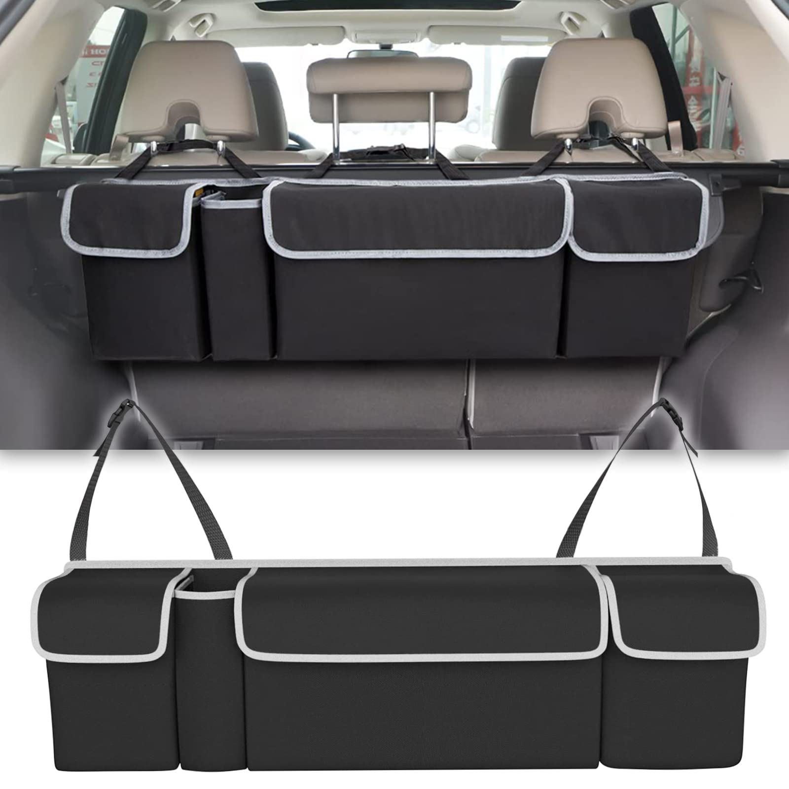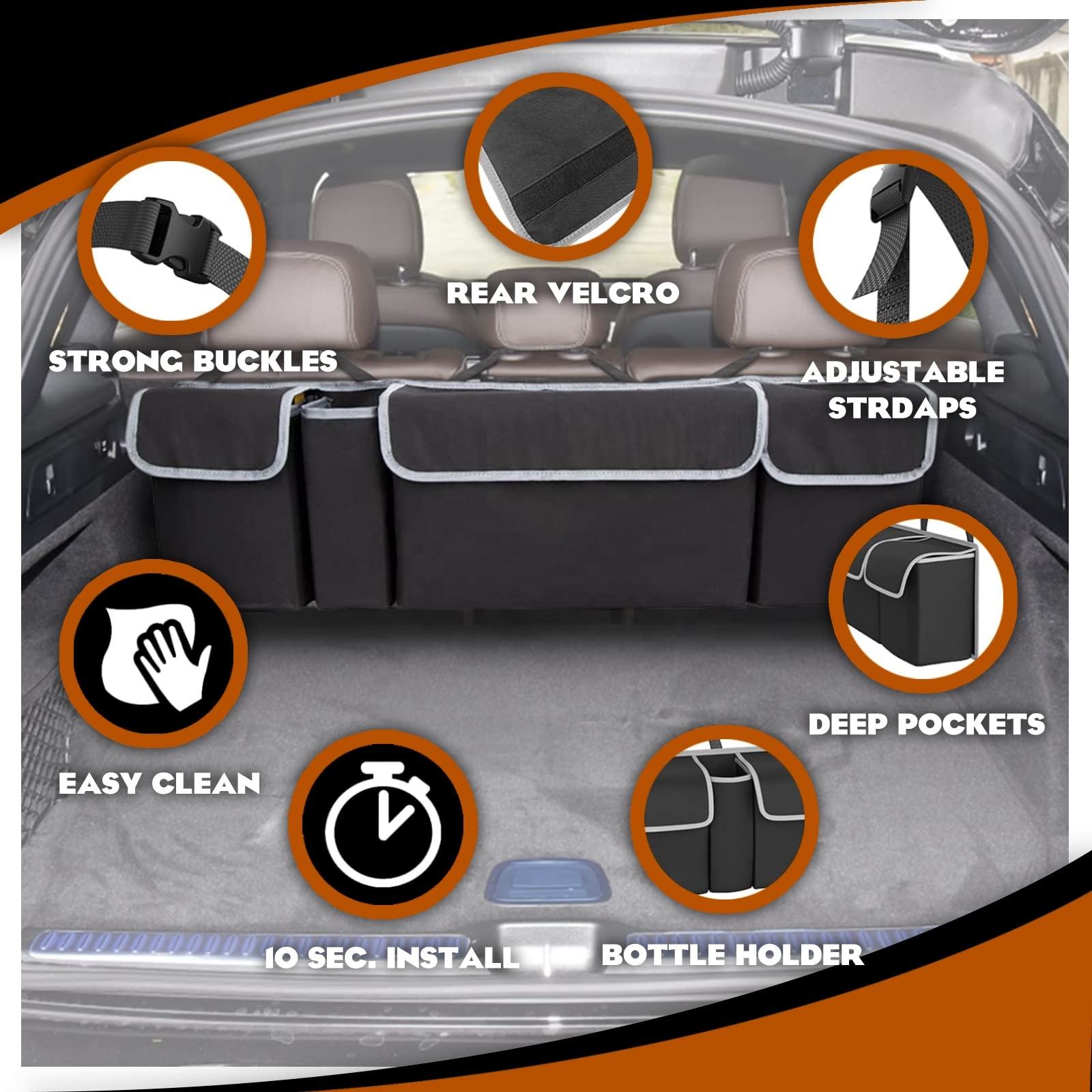 منظم خلفي للسيارة متعدد الوظائف مقاوم للماء مع 4 جيوب تخزين قابلة للطي معلقة مشروب محرك منظم صندوق السيارة للسيارة