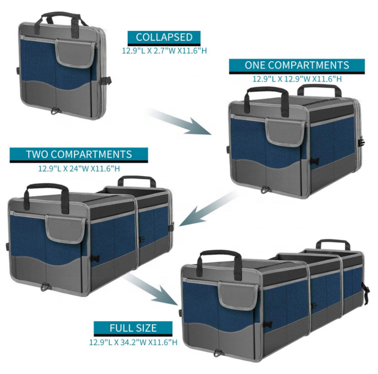 حار بيع سيارة المنظم صندوق جذع المنظم التخزين متعددة المقصورة قابلة للطي منظم صندوق السيارة مع الأشرطة القابلة للتعديل