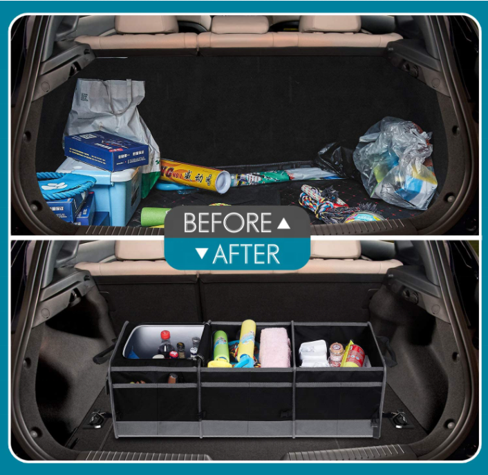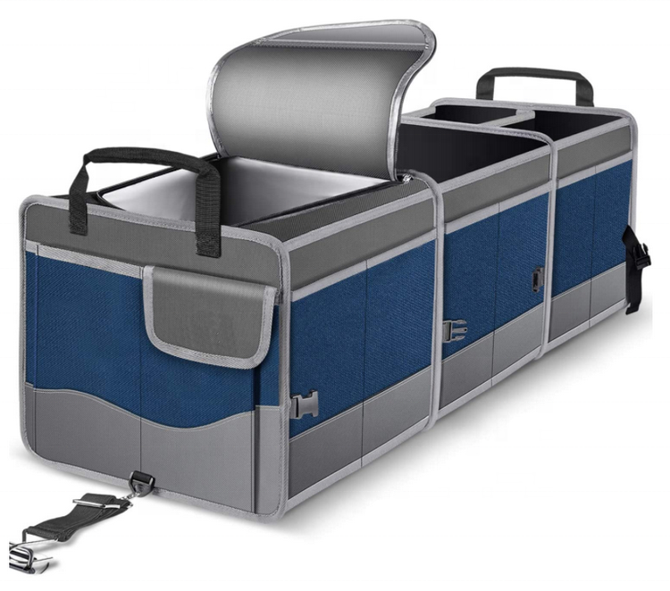 منظم صندوق السيارة تخزين السيارة مع حقيبة تبريد 3 مقصورات صندوق تخزين منظم صندوق السيارة القابل للطي