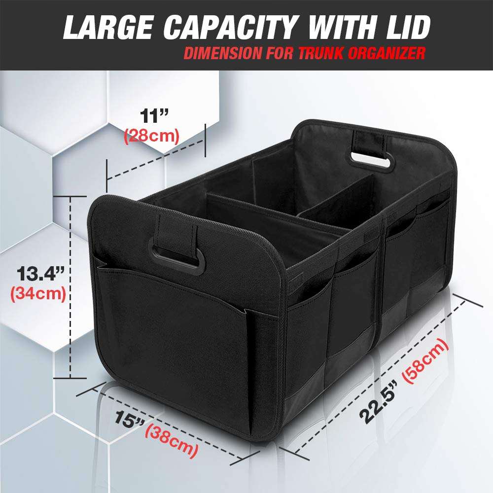 بيت / منتجات / حقيبة منظم / منظم السيارة / منظم صندوق السيارة مع غطاء قابل للطي لسيارة الدفع الرباعي ، منظم الأمتعة القابل للطي مع مقصورات قابلة للطي ، مقابض مقواة