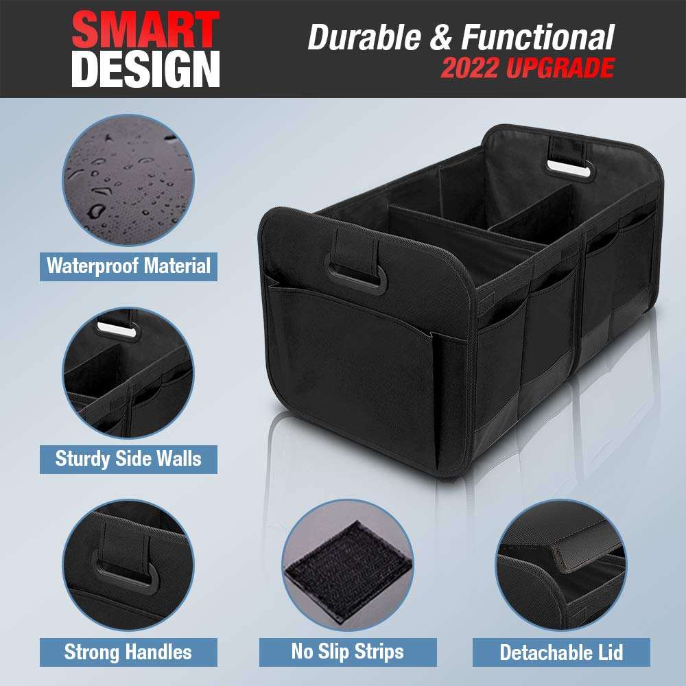 منظم صندوق السيارة مع غطاء قابل للطي لسيارة الدفع الرباعي ، منظم الأمتعة القابل للطي مع مقصورات قابلة للطي ، مقابض مقواة