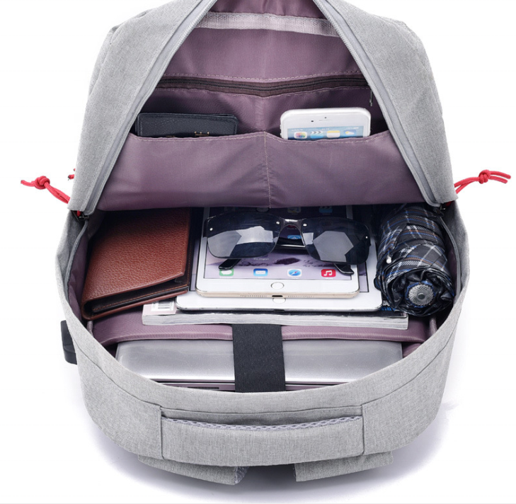 | حقيبة ظهر للكمبيوتر المحمول مقاومة للماء للأعمال / السفر مع شحن USB وسماعة أذن Port | ||