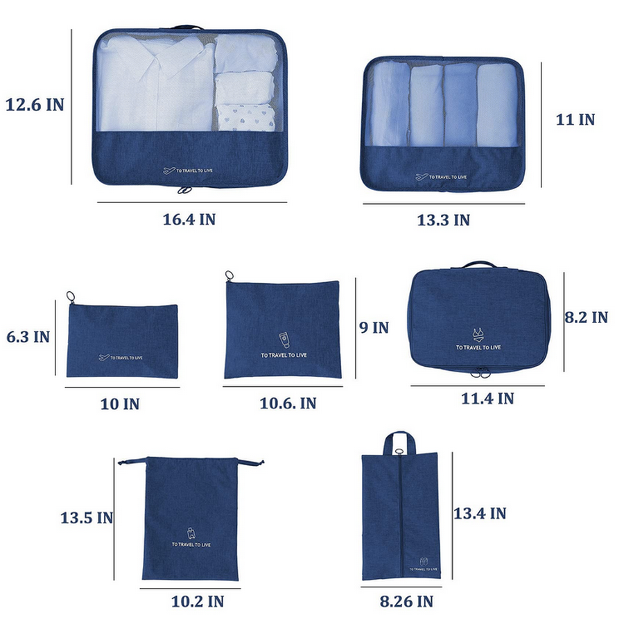 أكياس تخزين حقائب سفر خفيفة الوزن قابلة للطي 7 قطع مكعبات تعبئة منظمات تغليف الأمتعة لإكسسوارات السفر