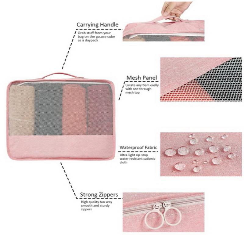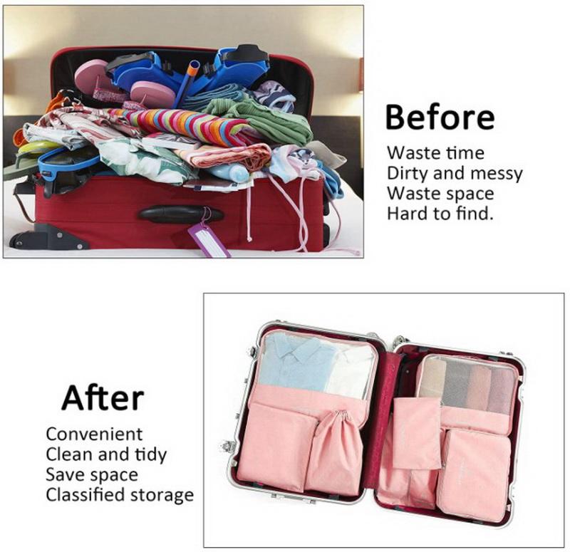 7 مجموعة مكعبات التعبئة لحقائب السفر المنظمون مع حقيبة الغسيل حقيبة الأحذية حقيبة Toitetry