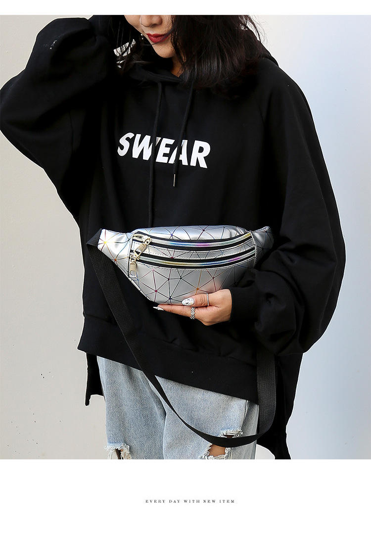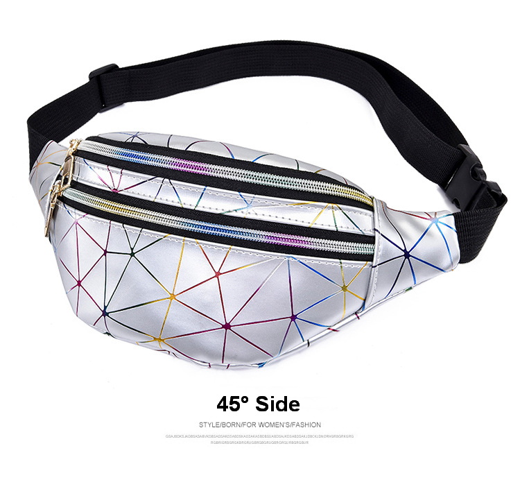 بيت / منتجات / فاني باك / BSCI Factory ماء PU ليزر الماس كتف واحد في الهواء الطلق الترفيه حقيبة الصدر متعددة الطبقات سعة كبيرة حزمة مراوح
